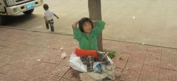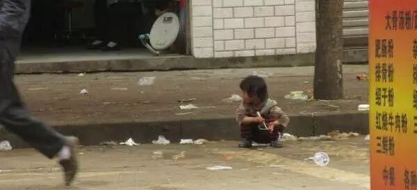 吃早餐的时候,门口一个捡垃圾吃的孩子,我随手拍下来。此地距离县政府门前100米,距离教育局门前30米,在县城最大最好的小学《民族小学》门口。