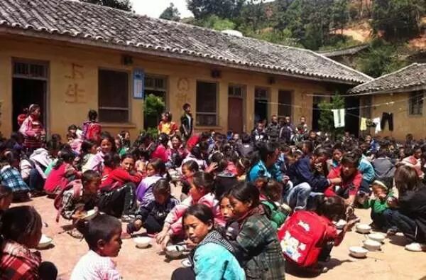这是孩子们第一次吃上午餐,而且还是平时难得吃到的米饭。以前,他们的午餐都是土豆和荞麦馍馍,早上煮好,带着出门,到了中午,又冷又硬。