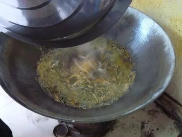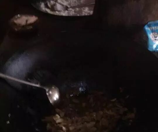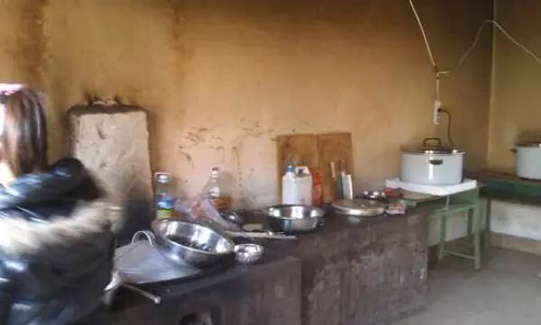 学校的厨房,柴火煮饭烧菜。墙已经被油烟熏得又黑又黄。