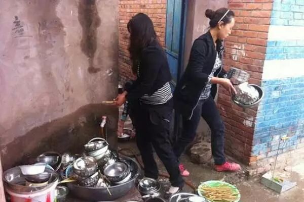 吃完饭,老师们帮忙洗碗,洗完了,还得去上课。