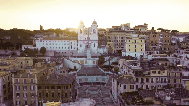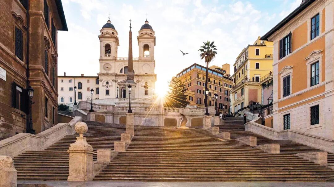 连接这座教堂和广场之间的西班牙石阶,从下至上结合了曲线和直线,