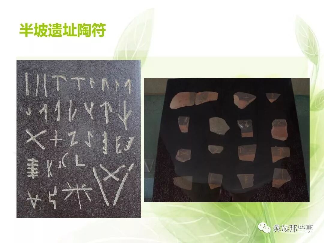 20世纪70年代末有彝族学者到半坡无意中发现这些陶纹疑似古彝文,但未深入研究。直到80年代,李乔先生认为彝文与中原文化的关系密切,专程将半坡出土的1个陶纹中的32个样本带回云南与古彝文对照研究,发现二者之间相同的比例很高,认为两种古文字具有血缘关系。接着,他邀请红河县老毕摩李八一昆协助辨认,终于崭露奇迹,李八一昆读出了其中23个陶符,而且能够释译字义。人民日报则于1990年11月12日以《半坡刻符是彝文始祖》为题作了深度报道。