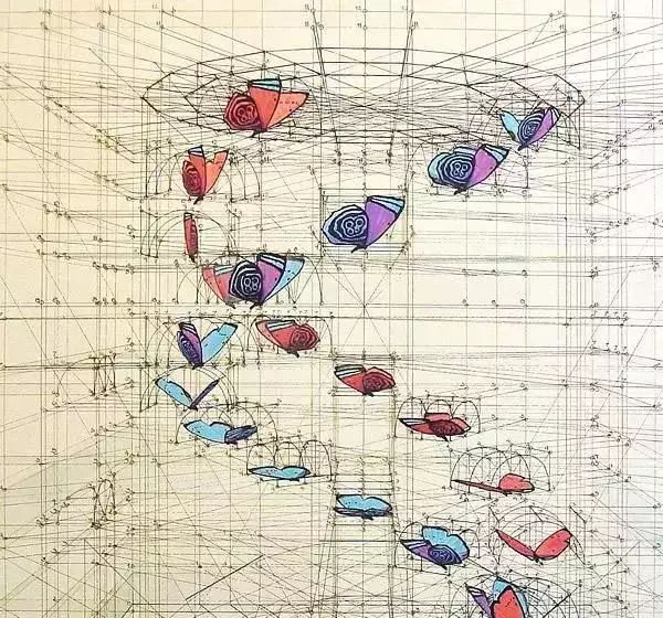 其中画的最多的就是蝴蝶以及蝴蝶的飞行轨迹,