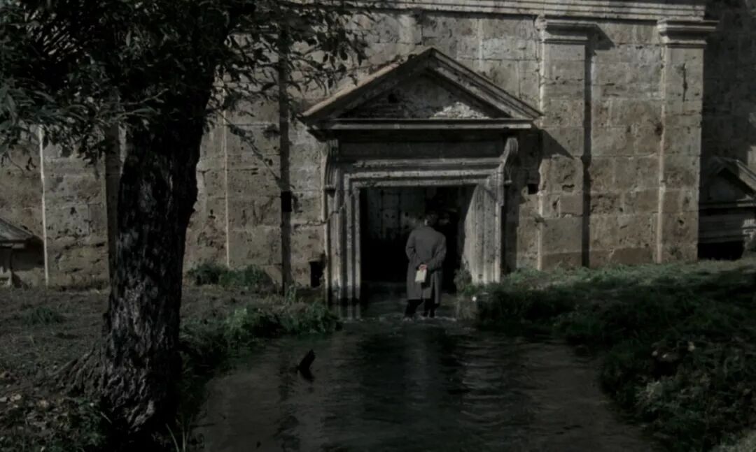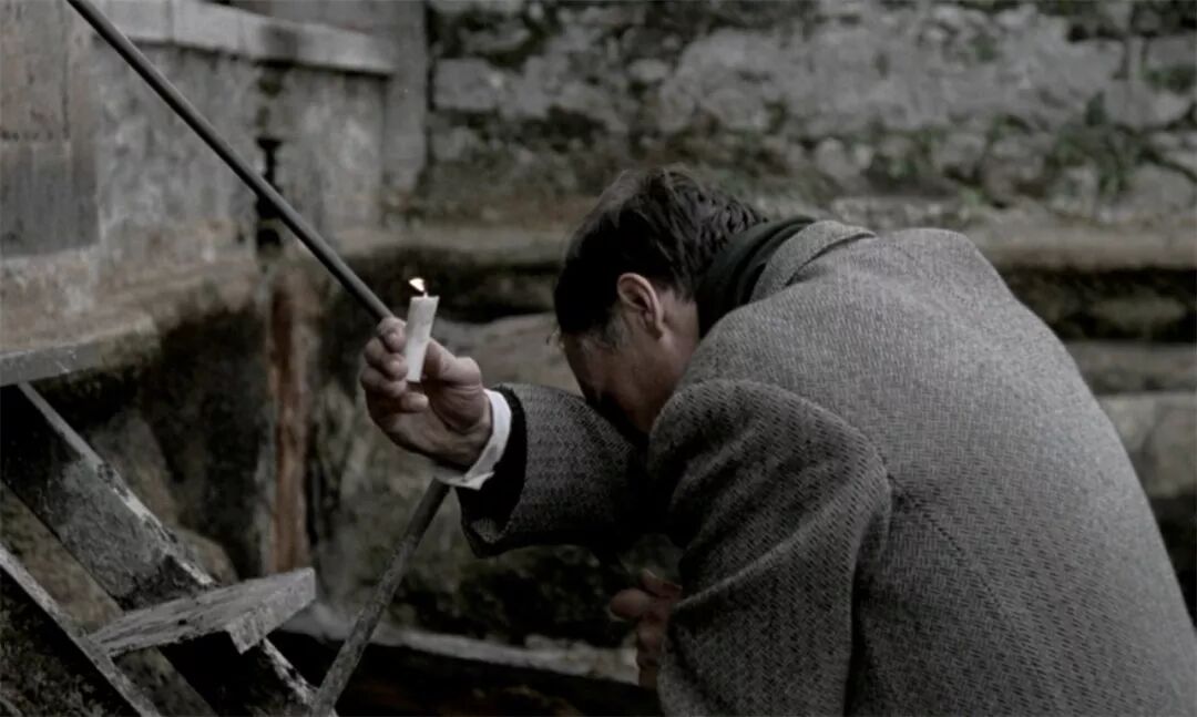 塔科夫斯基根本不怕观众会走开,那些走开的观众不是他的观众。如果你是塔氏的观众,你绝不会面对那段戈尔恰科夫手持蜡烛穿过干涸圣池的长达八分钟的镜头哈欠连天,而只会惊叹于塔科夫斯基能将镜头运用得如此流畅。你会等待戈尔恰科夫手捧蜡烛穿过干涸的圣池,并且在这段长达八分钟的镜头中,同戈尔恰科夫一样凝神屏气。八分钟是一个考验,是一种宗教仪式。