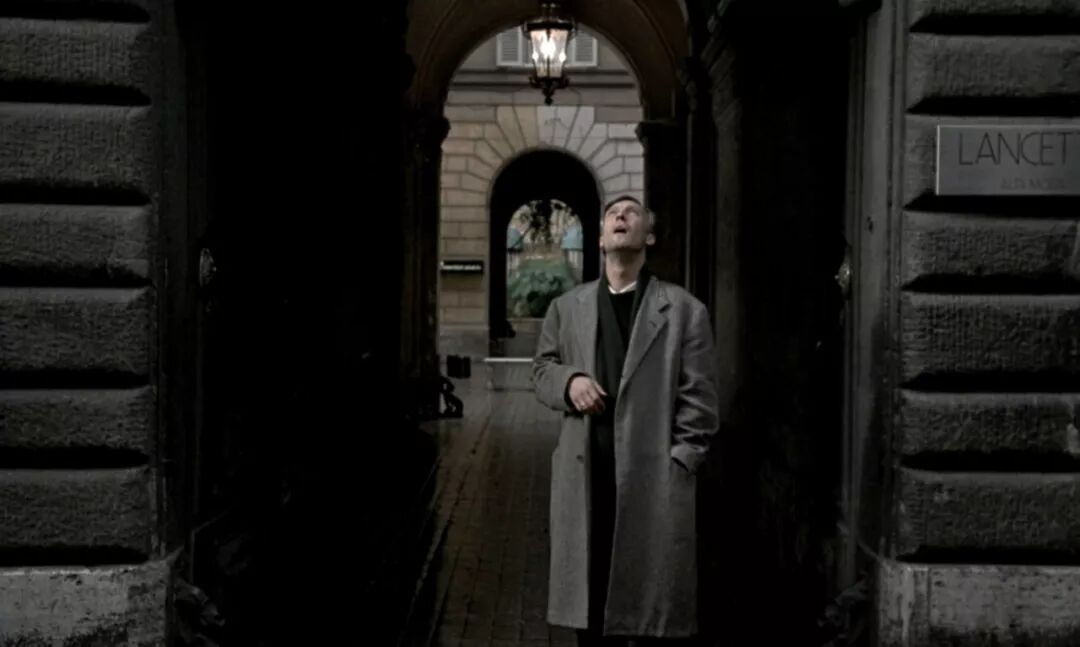 影片中有一句话,“诗歌是无法翻译的,音乐也是”。安德烈·塔可夫斯基用着几乎通感的手法通过电影来表达一种非常私人的、诗化的方式来表达一种所谓乡愁而实际超越乡愁直指人生终极归宿的情怀。影片中几个人物,一是男主要代为作传的音乐家萨斯诺夫斯基,为了女奴爱人从意大利回国后自杀;一个萨斯诺夫斯基在意大利曾遇到的“疯子”多米尼克,曾因认为世界已经堕落为了救赎把妻儿封闭家中七年,最后为了救赎人间返回莫斯科自焚于广场;女主尤金伲亚……