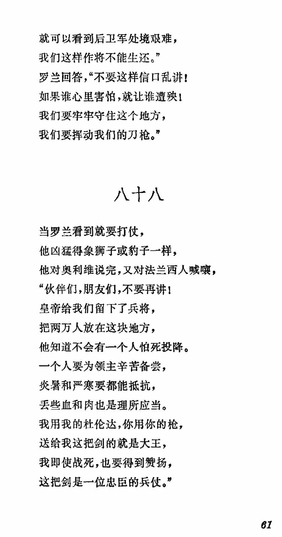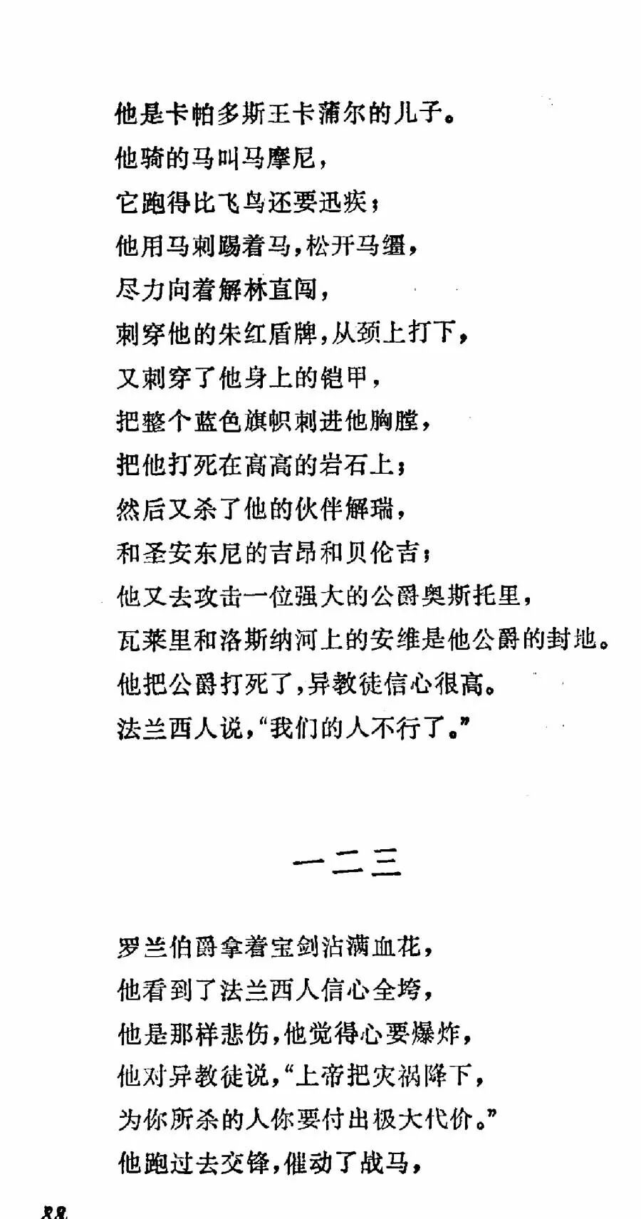 法国英雄史诗,中世纪武功歌的代表作品。全诗共分为291节,长4002行,以当时民间语言罗曼语写成。