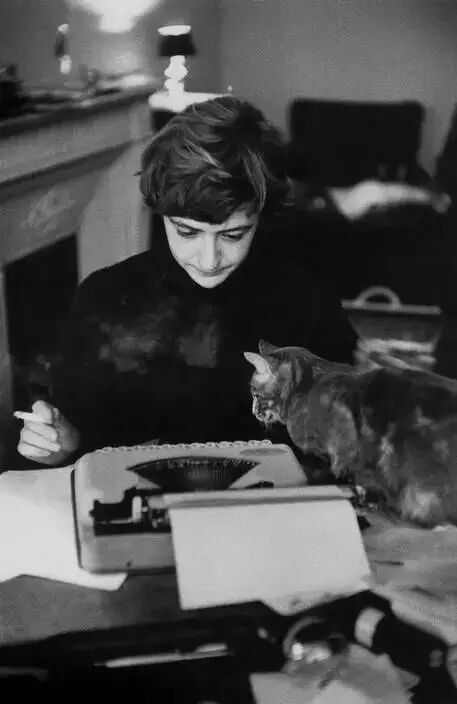 《你好,忧愁》的作者萨冈,正与猫一起写作
