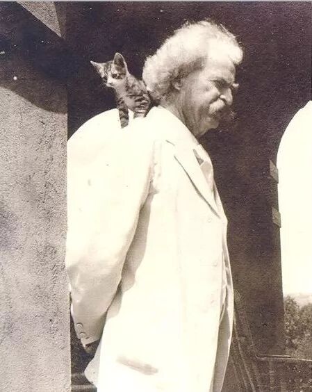 马克·吐温在他的自传《谁是马克·吐温》中说:“如果一个人爱猫的话,我不用别人介绍,就可以和这个人做好朋友。我就是无法拒绝一只猫,尤其是咕噜咕噜叫着的猫咪,它们是世界上最干净、最精巧、最有才智的动物,就像你最爱的那个女孩。”