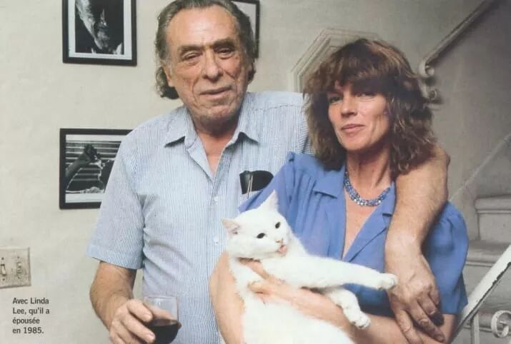 1985年,布考斯基和琳达·李抱着他们的猫